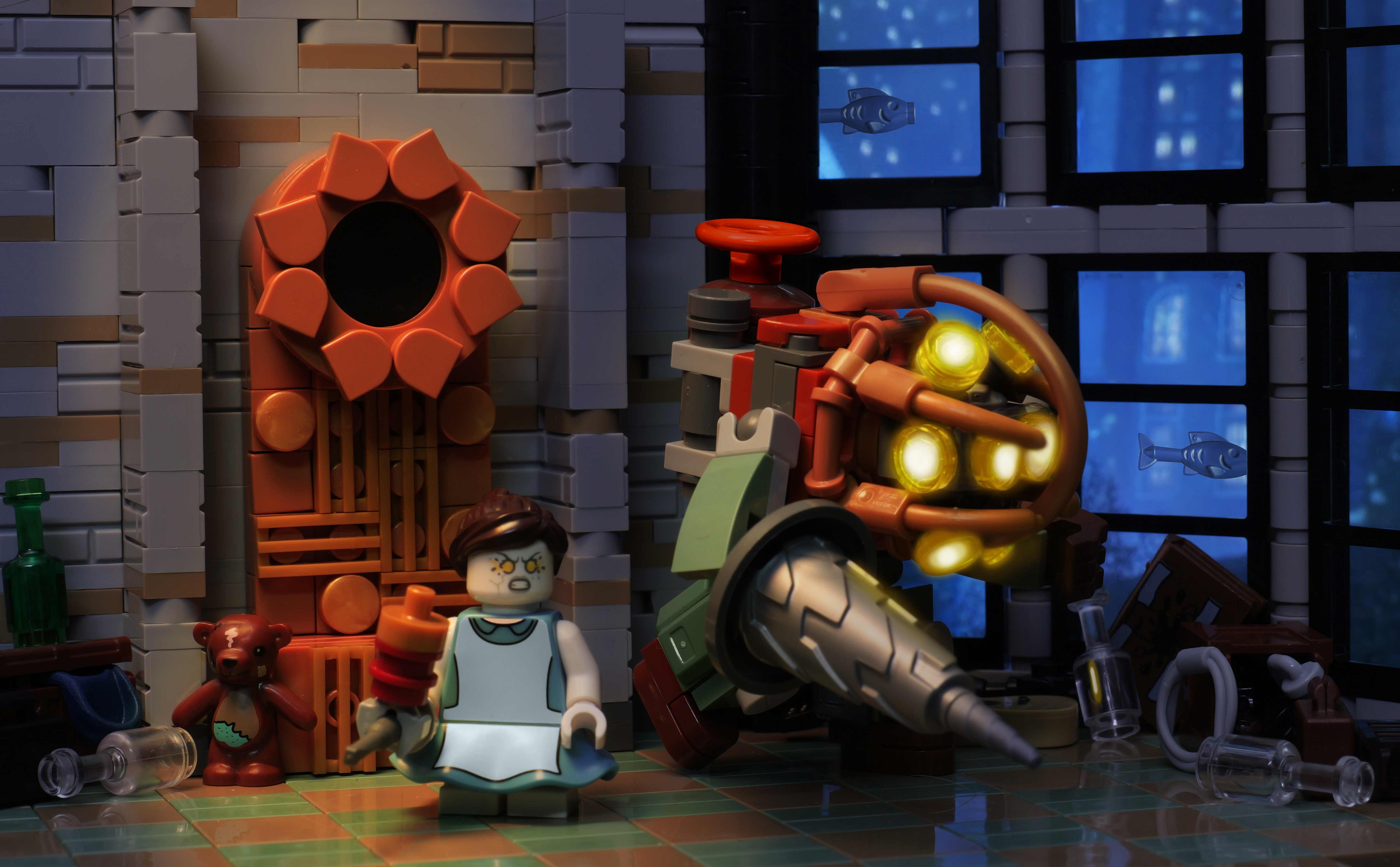 Martin B-26 Marauder WW2 Medium Bomber. 'Flak Bait' is part of the Smithsonian collection and flew over 200 combat missions in Europe during WW2. The most of any surviving allied aircraft in existence. The model is four or five thousand lego parts. The landing gear is heavily stressed and at the limit. To balance, the model has three loaded power functions battery packs forward of the center of gravity and a small balloon with metal BBs in the nose. Total weight is 11lbs.