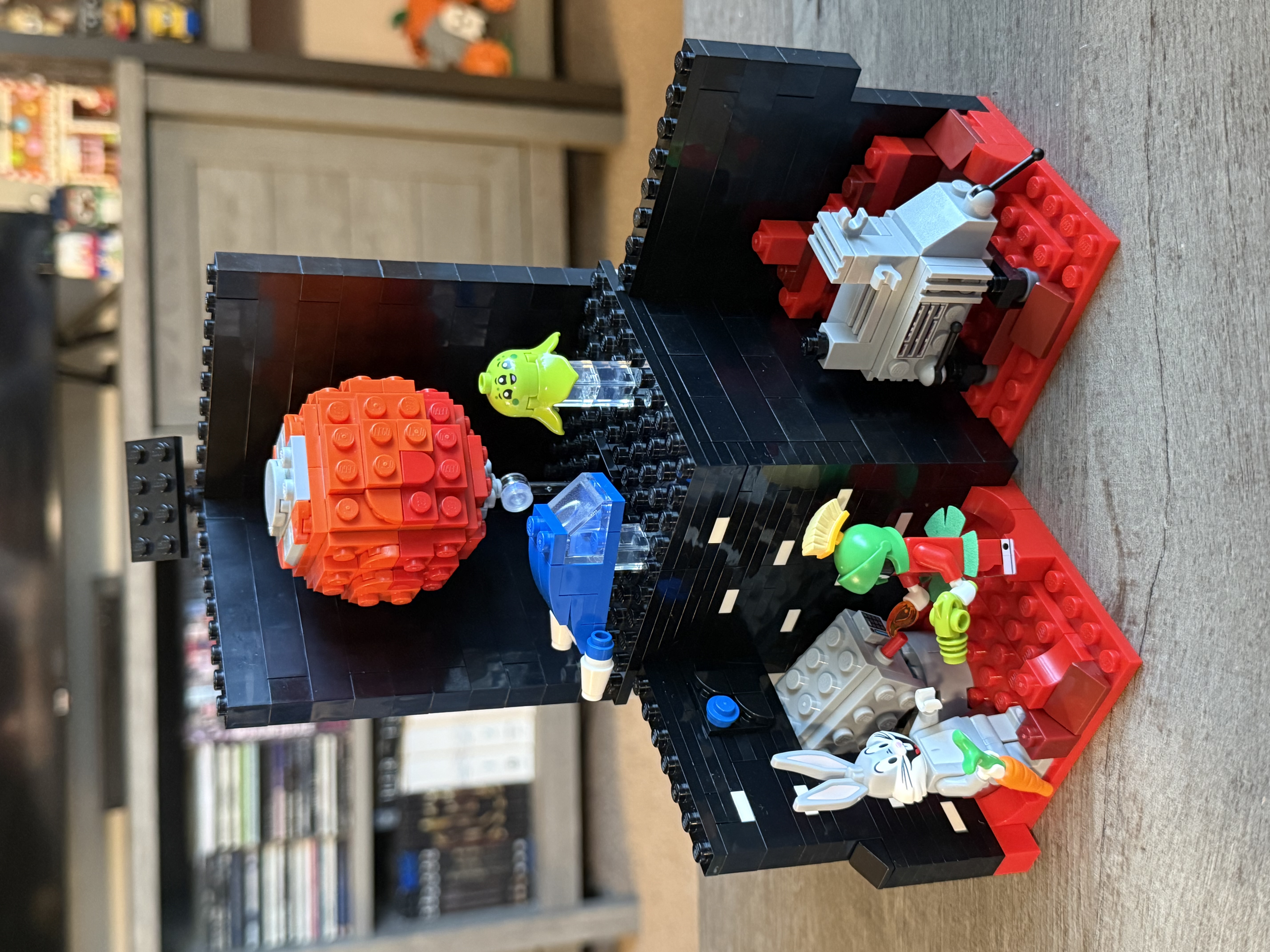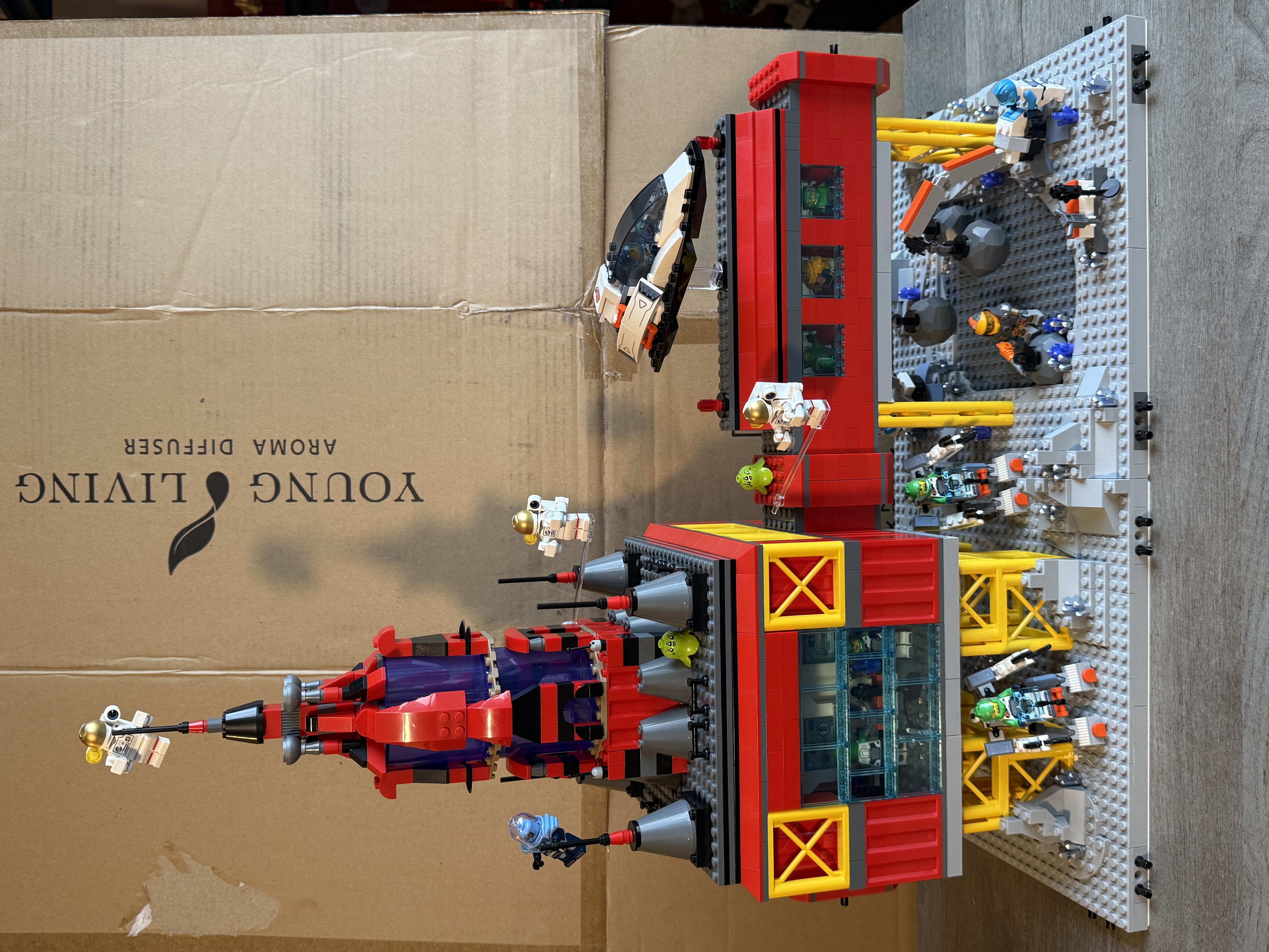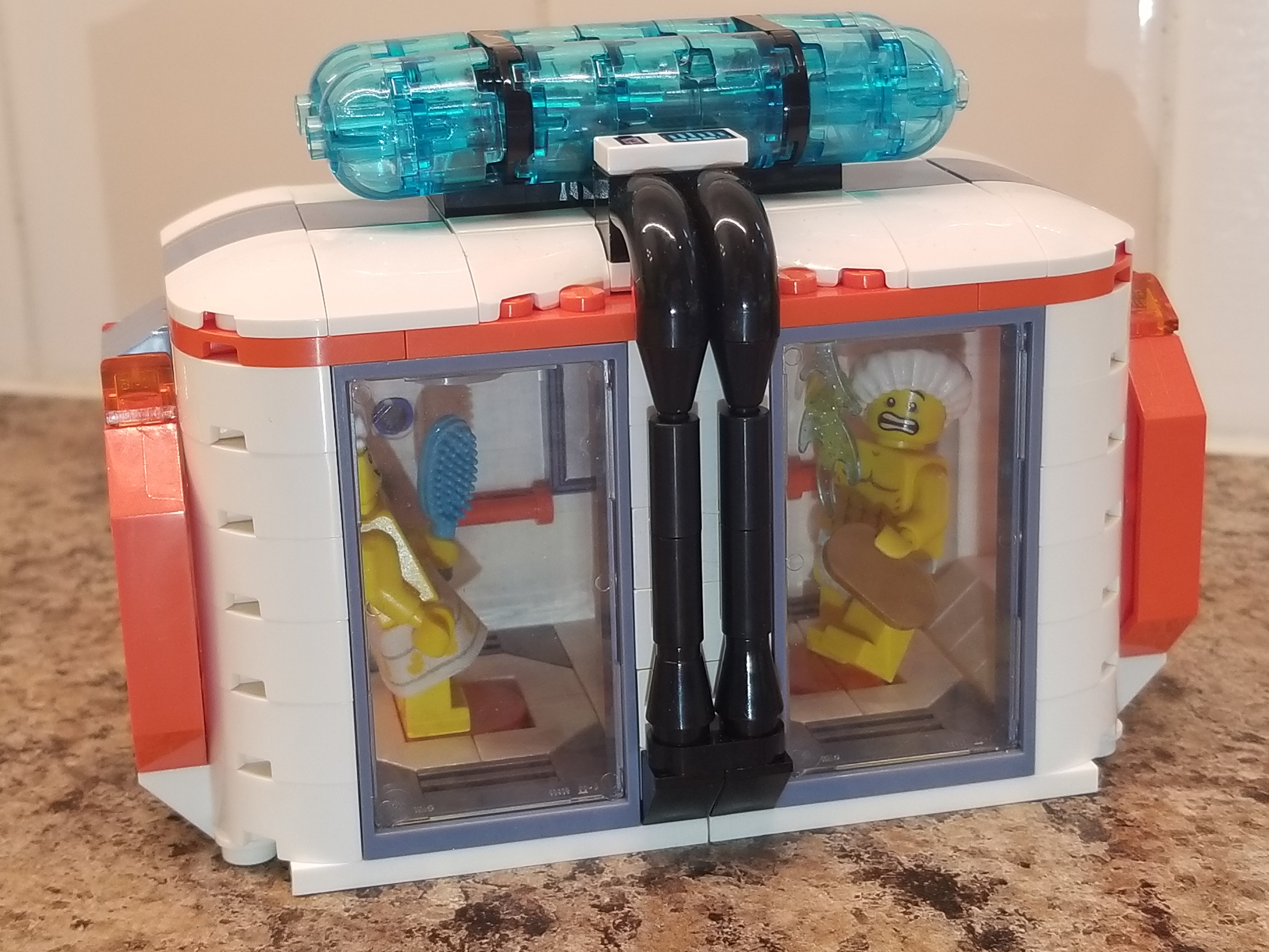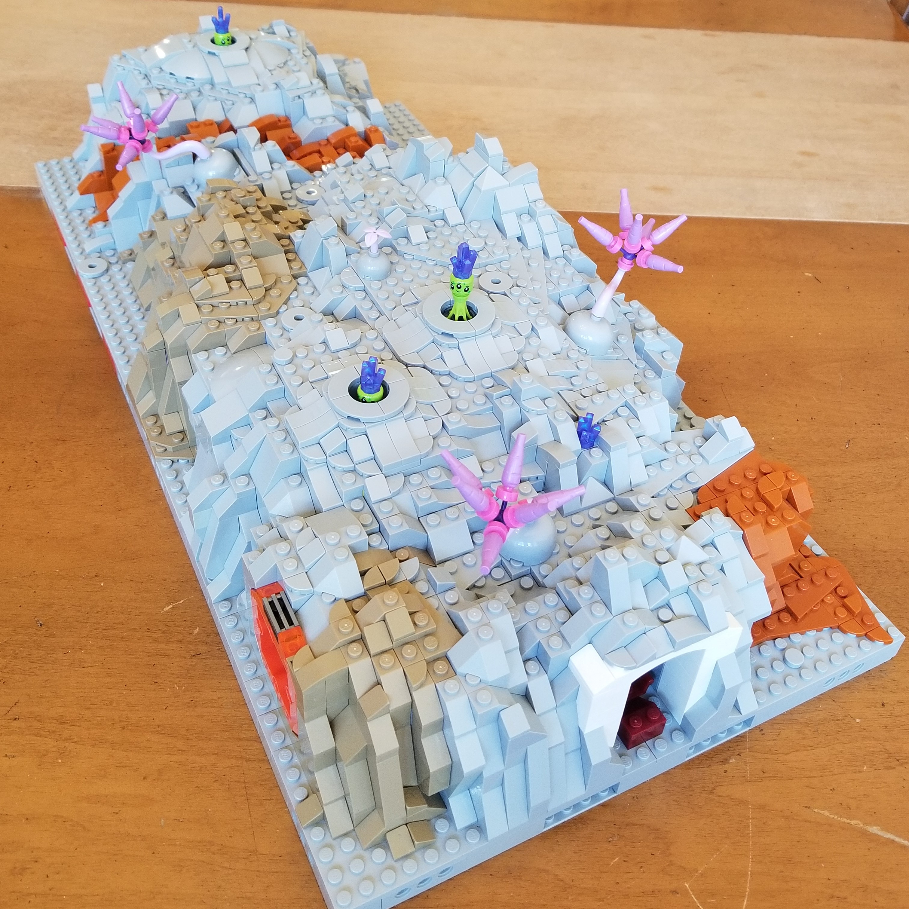 This MOC build is my contribution to the Moonbase Cascadia Collaboration. The Science Center contains a laboratory (viewed from the window) and an overhead bridge to the next part of the Moonbase. Below the bridge is the excavation site where the spacemen are digging up moon rocks and special gems while Mechs walk around! The tower on top completes the look of the Science Center.